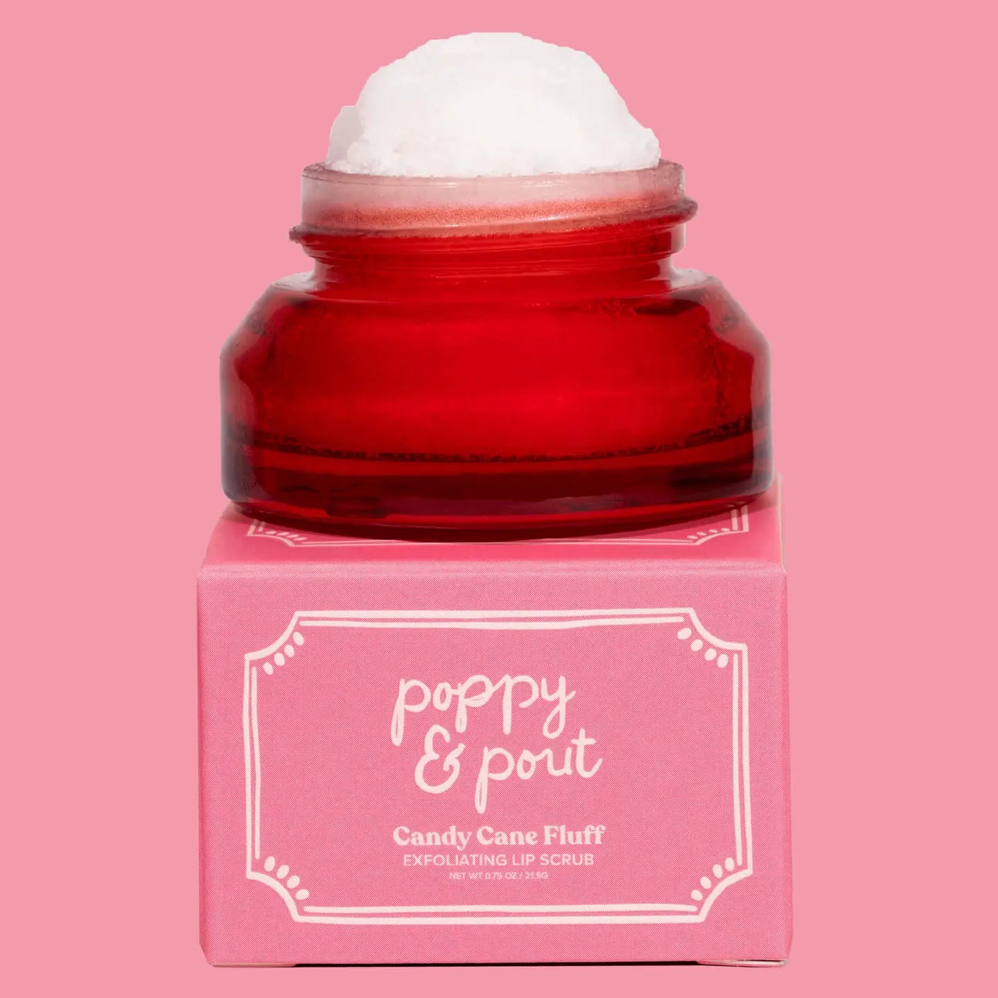 Say goodbye to dry lips, our limited-edition holiday lip scrubs are sure to keep your lips exfoliated and smooth all season long. For best results, pair with a hydrating lip balm. This Christmas lip scrub is the perfect holiday beauty gift or stocking stuffer! Poppy & Pout's Exfoliating Lip Scrubs are the perfect way to prep your pout for smooth, hydrated lip balm application. We use a clean combination of natural ingredients to help clean and gently exfoliate your lips. Net Weight 0.75 / 21.5g