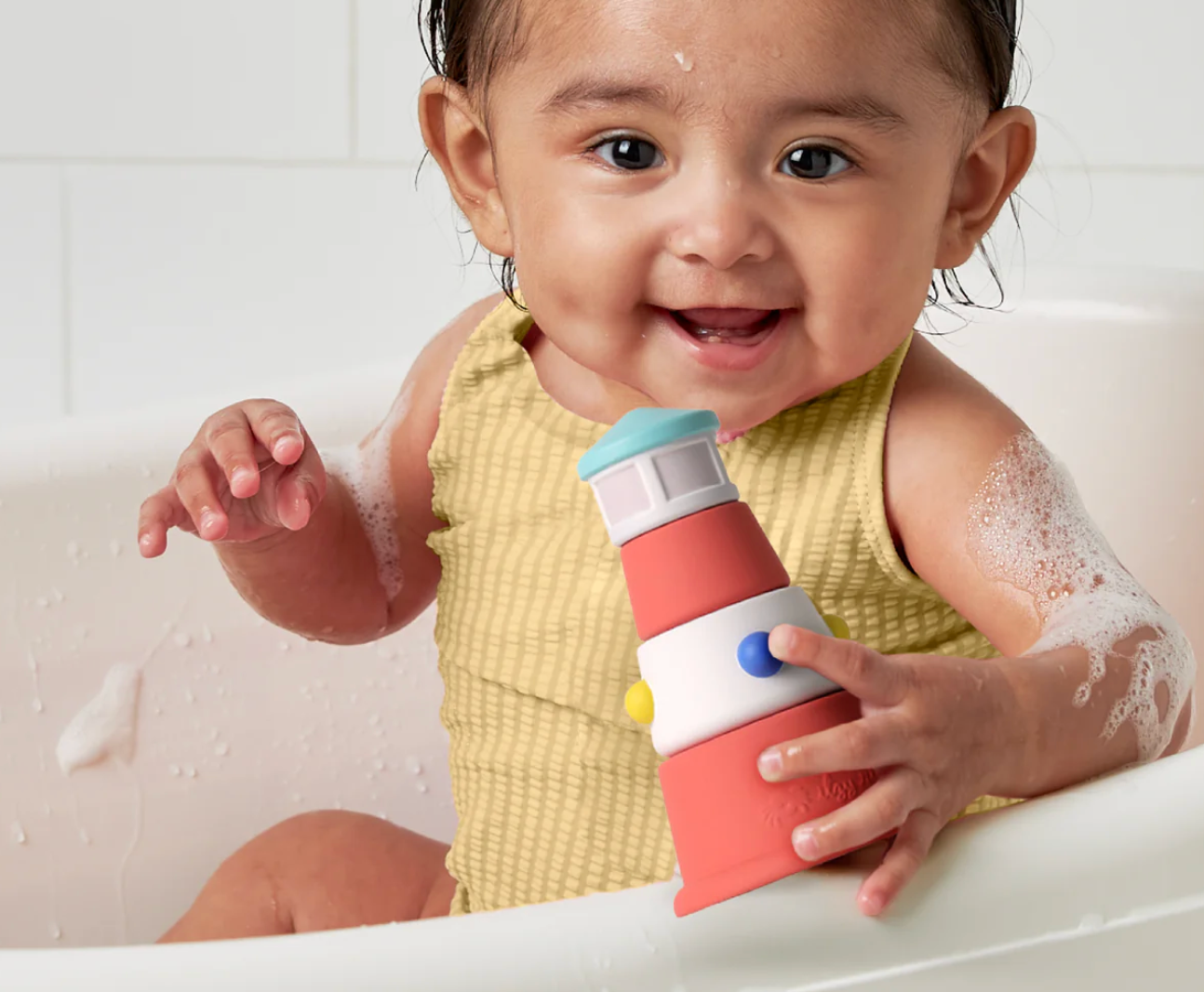 The stackablelighthouse encourages motor skill developmentand the water-squirting octopus and seagull stimulate the senses. Get ready to set sail for endless bathtime adventures!