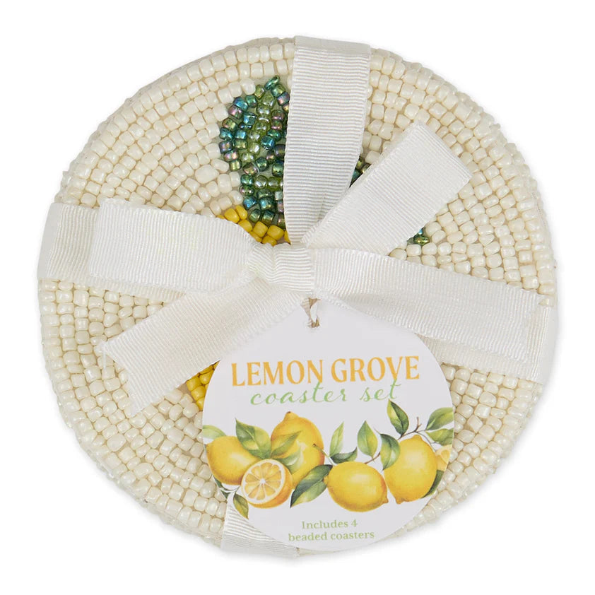 The DII Lemons Beaded Coasters Set of 4 adds a vibrant citrus accent to spring and summer tabletop collections. Handcrafted with intricate glass beadwork, each coaster features a detailed lemon motif that brings texture, color, and charm to any setting. A protective cotton backing helps guard surfaces against moisture and heat, making these coasters as functional as they are decorative. Ideal for seasonal displays, gift bundles, or outdoor entertaining assortments