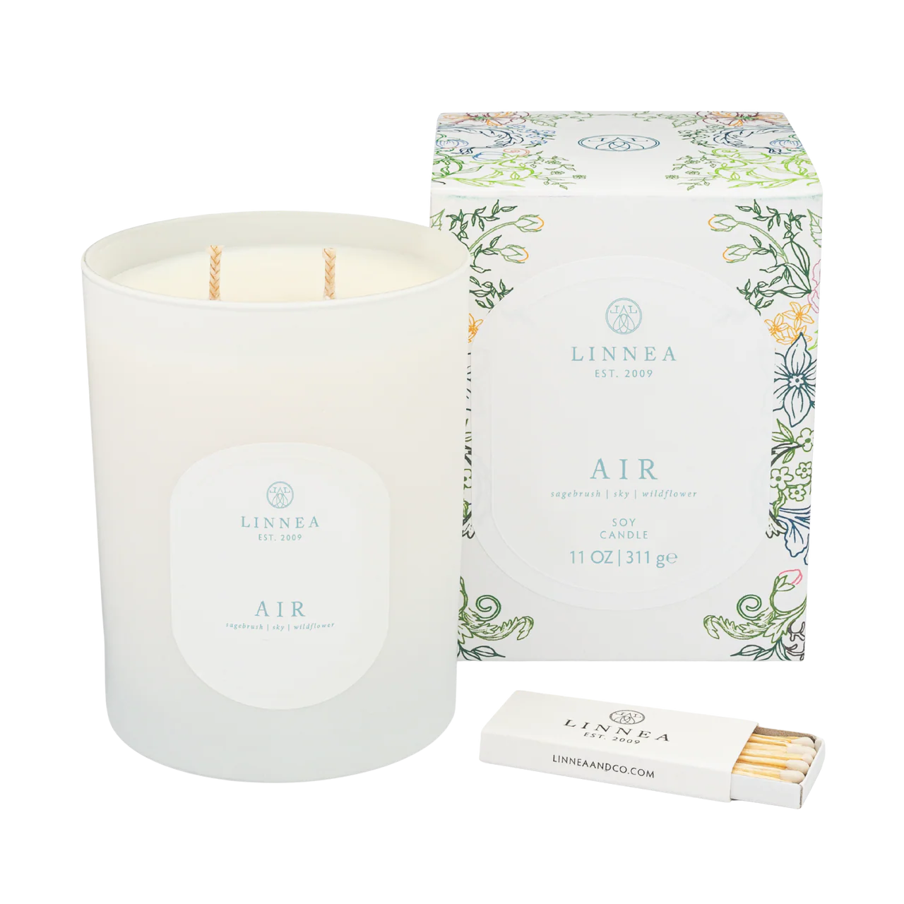 Introducing the Air Large Candle, a new Spring launch shaped by Laura’s hike through Jackson Hole with her son, where the world felt hushed and infinite. This scent rises with sky, sagebrush, and wildflower, capturing the quiet awe of thin mountain air drifting across open peaks. Hand-poured in alabaster glass, its clean soy wax and double wick lift an atmosphere that feels weightless and free, like standing above the tree line with the earth breathing beneath you.