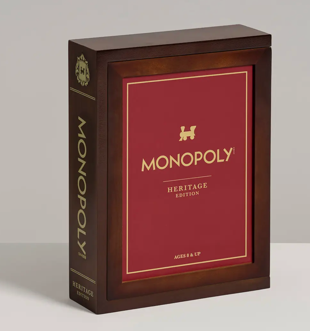 MONOPOLY® HERITAGE EDITION Crack open the game and watch history come to life with the Heritage Collection! This unique series of games features timeless classics that have remained family favorites over the decades! Enjoy a premium gameplay experience when the unique wood box is not displayed on your bookshelf.