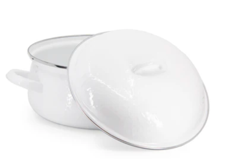 The Solid Dutch Oven in classic white enamelware is a stunning addition to your kitchen, perfect for slow-cooking soups, stews, and casseroles. With its durable construction, it ensures even heat distribution for perfectly cooked dishes every time. The timeless white finish adds a touch of elegance, making it a beautiful serving piece as well. Lightweight and easy to clean, this Dutch oven is ideal for both everyday meals and special occasions. Elevate your culinary creations with this versatile and stylish kitchen essential!