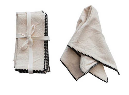 Cotton Napkins w/ Edge Stitching, Natural & Black, Set of 4