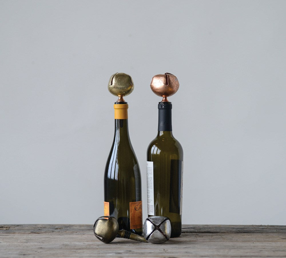 This 5" tall and 5" long metal bottle stopper features a charming bell and comes in four fun colors—Gold, Silver, Bronze, and Rose Gold—each sold separately. Perfect for adding a festive touch to your wine bottles!