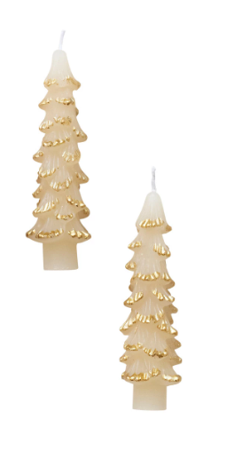 4-3/4"H Unscented Tree Shaped Taper Candles w/ Gold Tips in Box, Evergreen or Cream Color, Set of 2 (Approximate Burn Time 3 Hours)