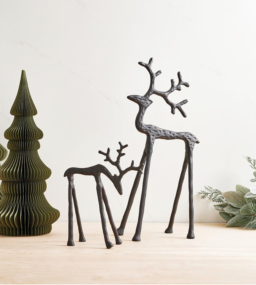 Expertly crafted from durable iron, these striking deer figurines feature a sleek, matte black finish that adds a modern twist to a classic motif.