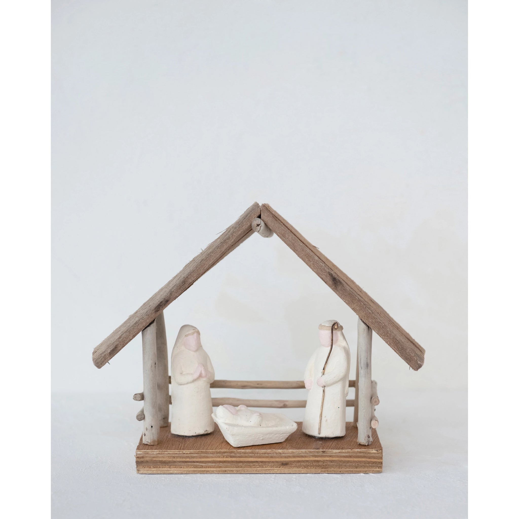 8-1/2"L x 3"W x 7"H Handmade Driftwood & Paper Mache Nativity w/ Wood Base (Each One Will Vary)
