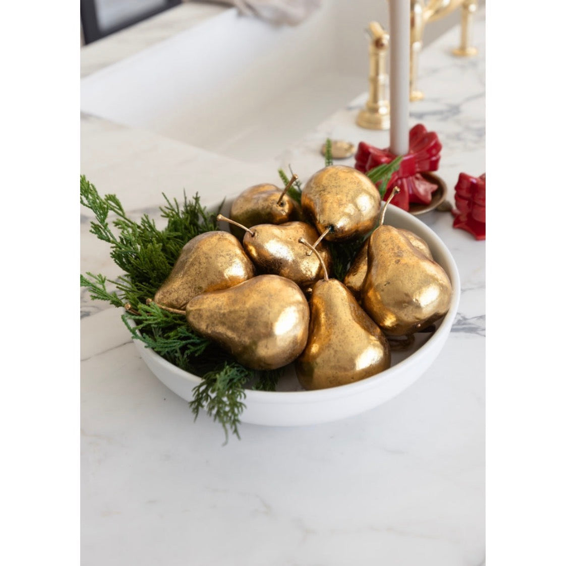 Add golden charm to your space with our 4 inch gold pears! These eye-catching fruits bring a touch of whimsy and style to any room. Perfect for decorating, gifting, or just as a fun conversation starter. Catch eyes and compliments with these playful pears!