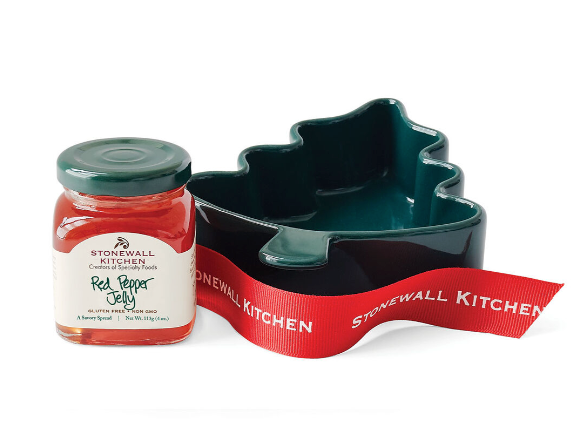 This Stonewall Kitchen Pepper Jelly Tree Ramekin makes the perfect gift when just a little something is needed such as a secret Santa or Yankee swap gift. An adorable reusable tree ramekin comes complete with a jar of our Hot Pepper or Red Pepper Jelly. Just fill ramekin half way with cream cheese and top with Pepper Jelly for a terrific tasting, quick snack. Comes wrapped in a cellophane bag with a red ribbon - all ready for giving.