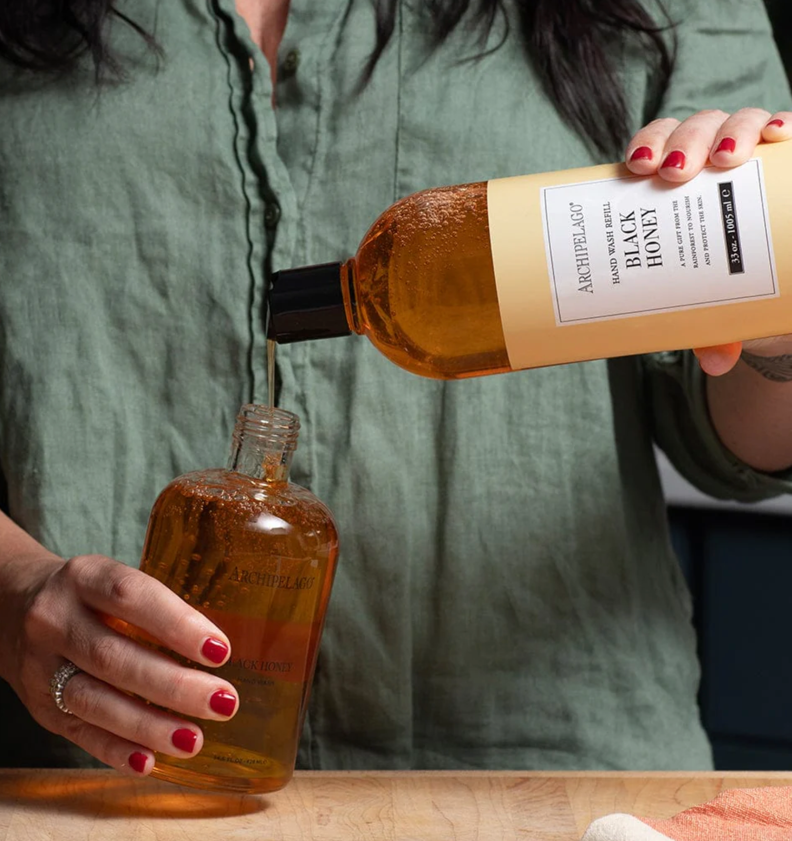 Replenish your glass hand wash vessel with our nourishing Black Honey Hand Wash Refill and experience a gentle yet effective clean. Crafted with care, this luxurious hand wash is free of parabens and sulfates and leaves a subtle honey scent. Each 33 oz. refill provides approximately 2 bottle refills.