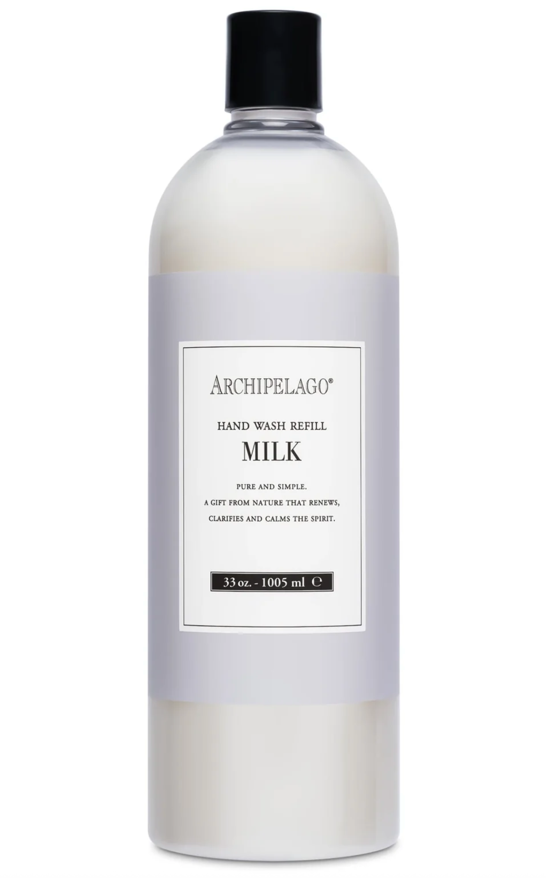 Replenish your glass hand wash bottle with our ultra soothing, eco-friendly Milk Hand Wash Refill. Enriched with dried milk solids and natural proteins from oat, soy and rice, our best selling hand wash formula keeps hands healthy and clean. Each 33 oz. hand wash bottle provides around two refills.