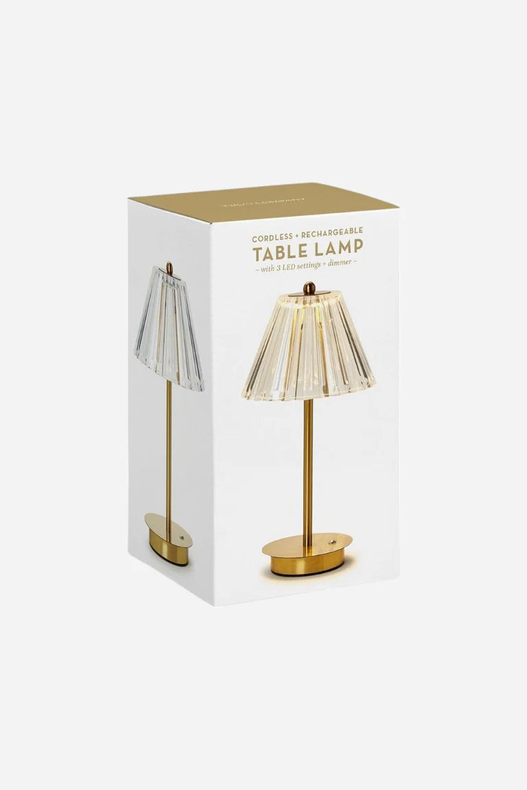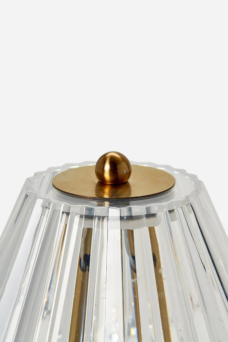 With an elegant clear acrylic shade and gold base, this LED lamp provides cordless light at the touch of a button. Once charged via the included USB cable, the lamp can be used anywhere and includes three light settings and a dimmer function.