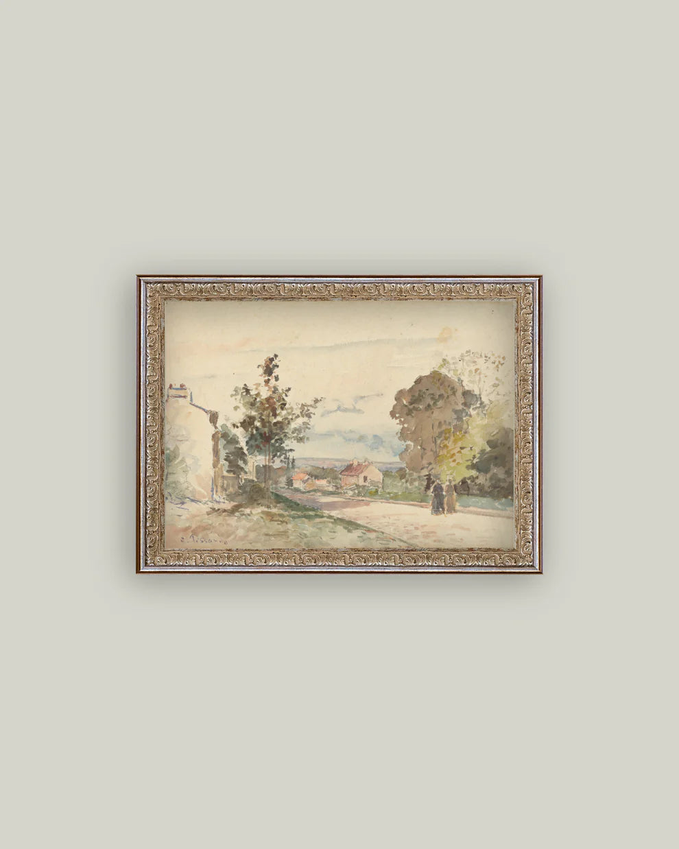 This vintage landscape is printed on raw canvas and placed in an antique frame for an authentic, timeless look.