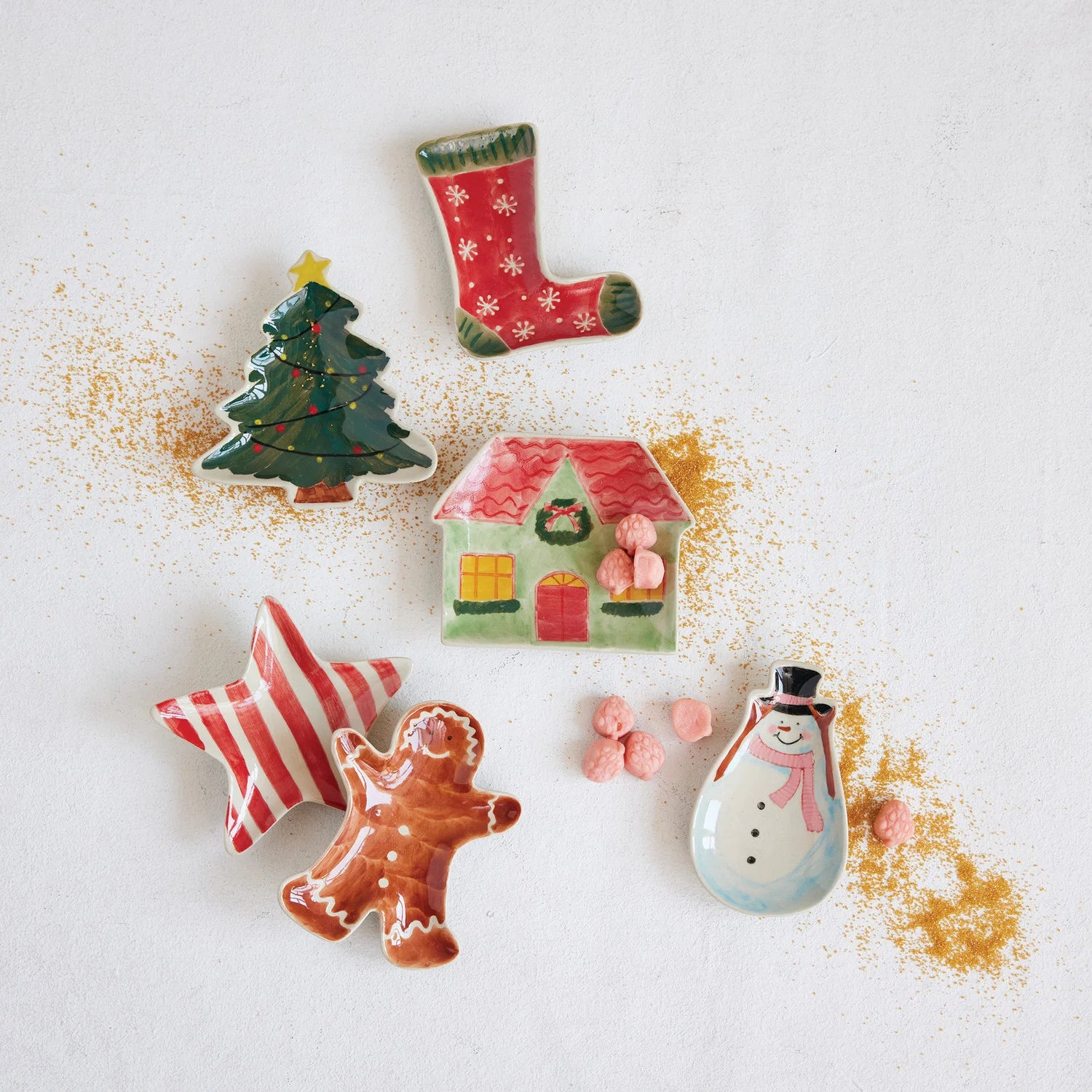 Approximately 4"L Hand-Painted Stoneware Holiday Shaped Dish, Multi Color