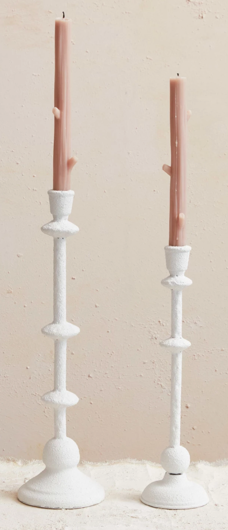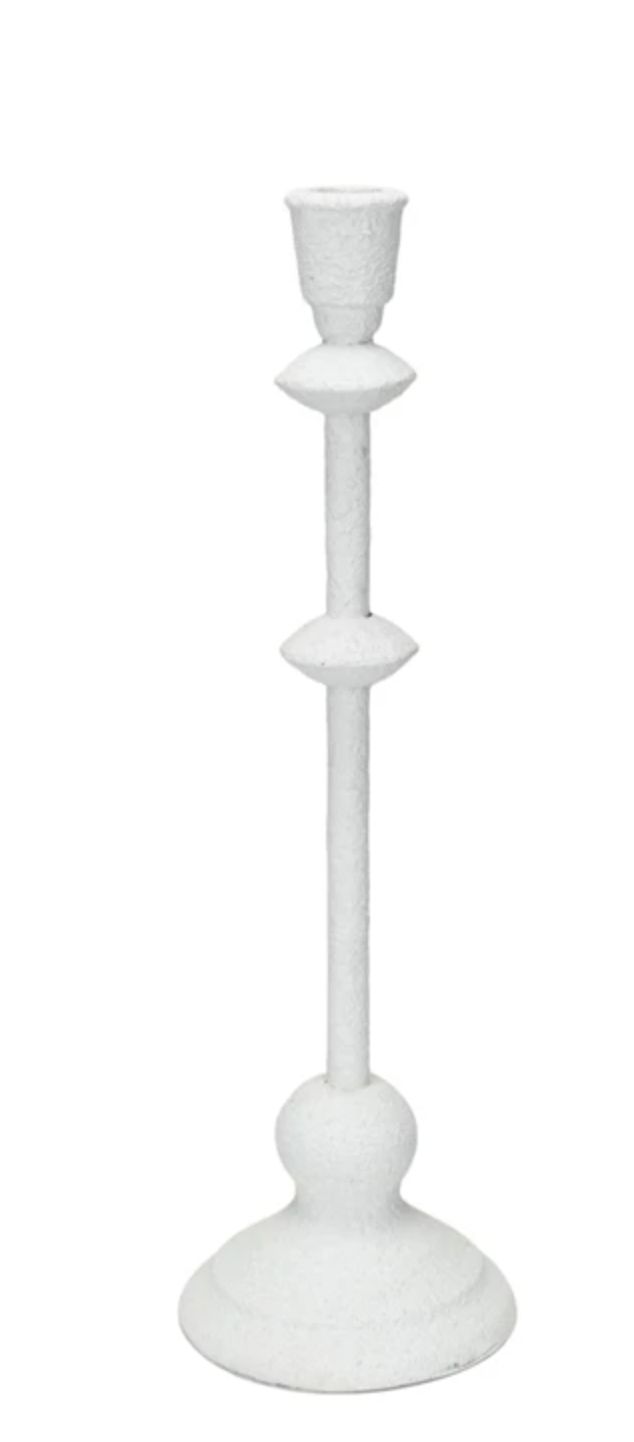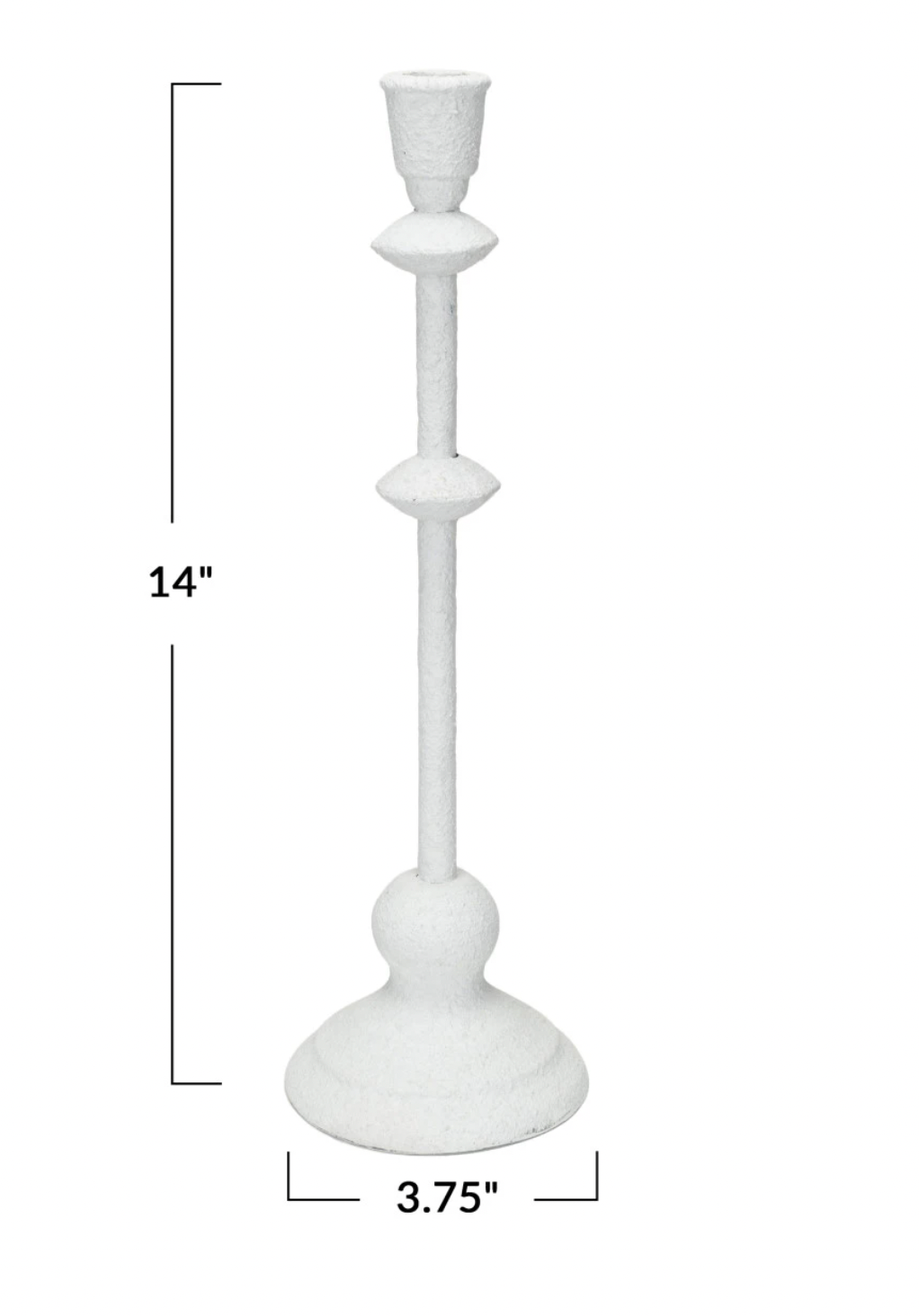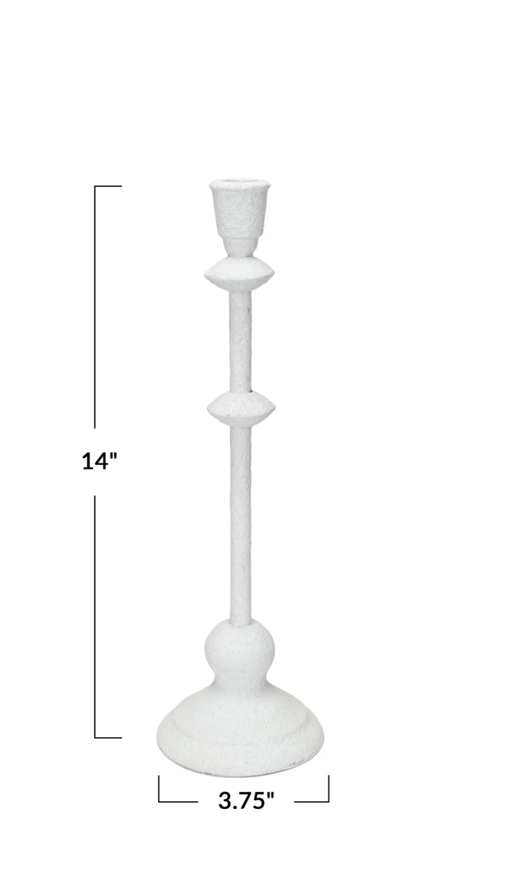 Elevate your candle game with our Metal Taper Holder! Standing at 14 inches tall with a sand finish and antique white color, this 3-3/4" round holder adds a touch of vintage charm to any room. Made from sturdy metal, it's the perfect way to display your favorite taper candles.